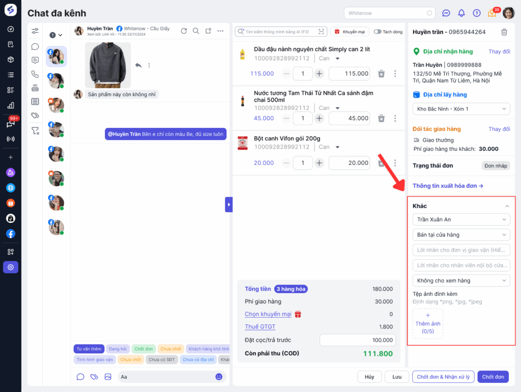 Cách 2: Chốt đơn ngay và gửi xác nhận