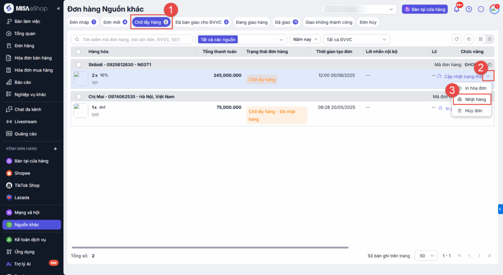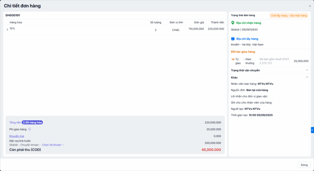 Sau khi nhấn Nhặt hàng: Hệ thống sẽ tự động đổi trạng thái đơn hàng thành trạng thái tiếp theo, đảm bảo tiến độ xử lý trên phần mềm đồng bộ thực tế.