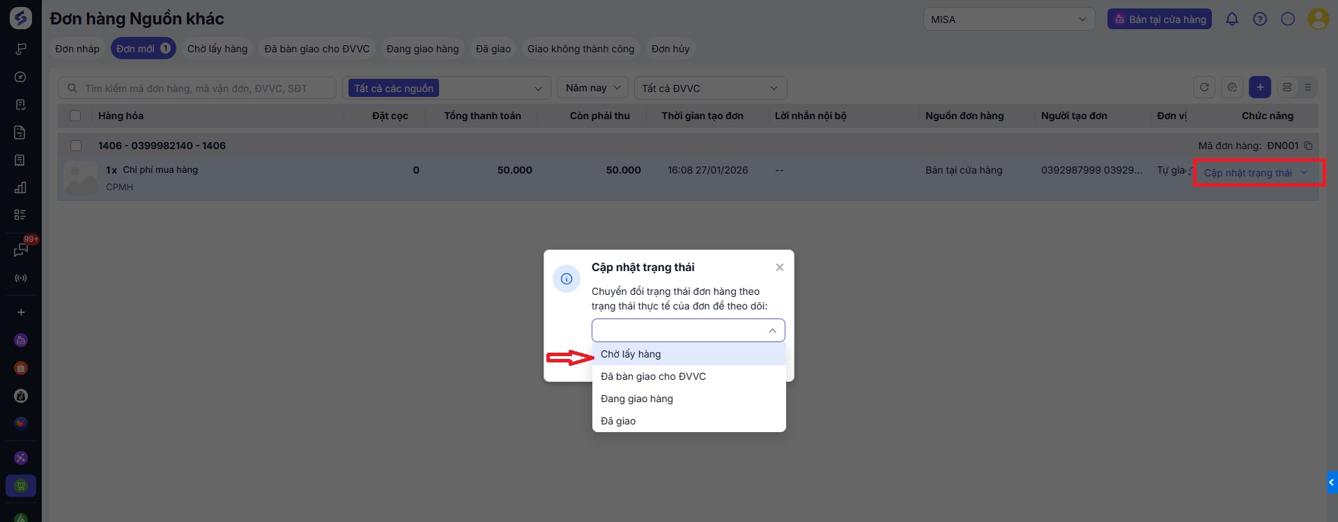 HOẶC Cập nhật trạng thái đơn hàng theo nhu cầu.