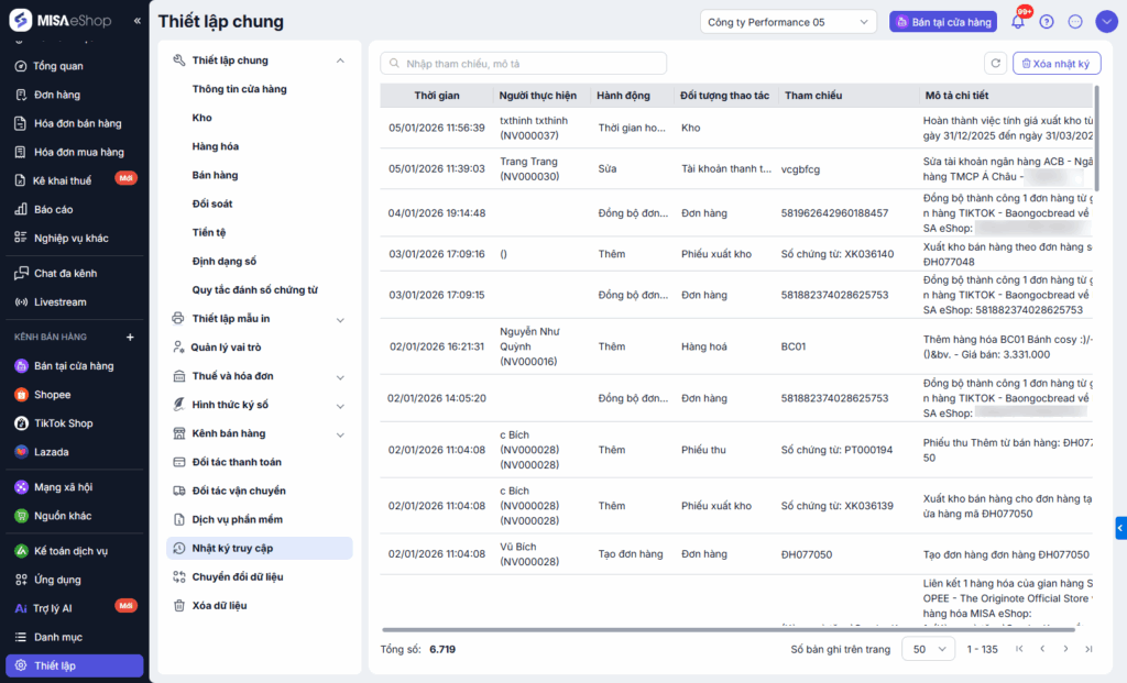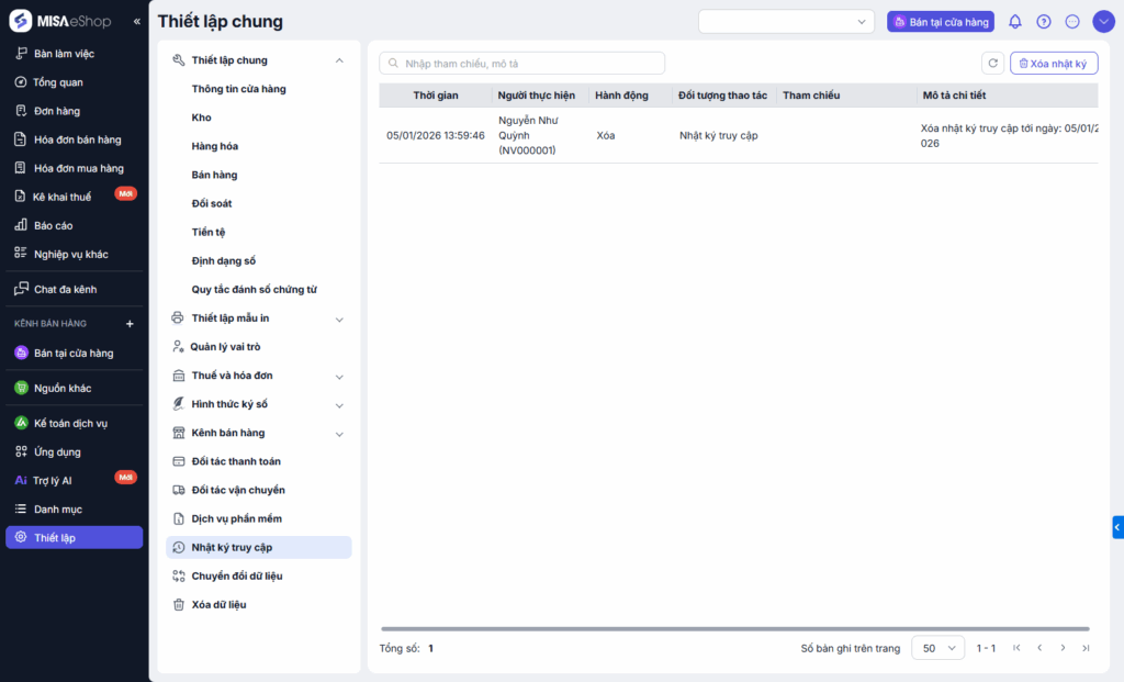Bài viết này hướng dẫn cách xem và xóa nhật ký truy cập – ghi lại các thao tác thay đổi dữ liệu trên phần mềm. Qua đó, anh/chị có thể dễ dàng tra cứu, kiểm soát cũng như thực hiện xoá các bản ghi nhật ký khi cần thiết.