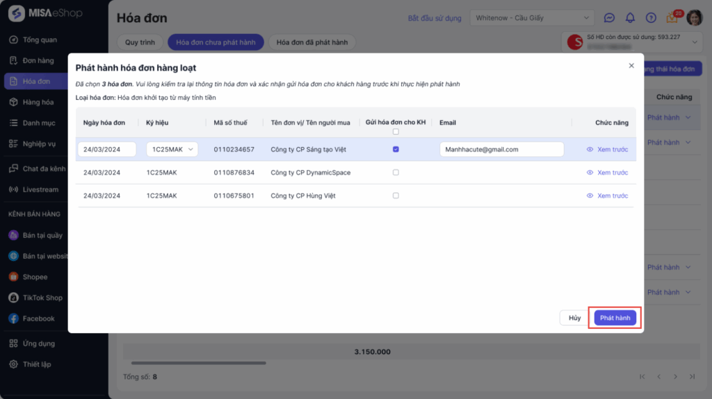 - Nhấn Phát hành để thực hiện phát hành hàng loạt.