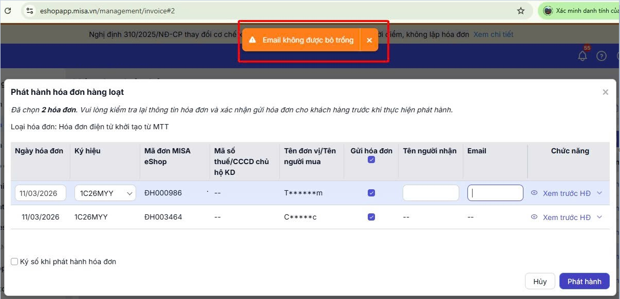 2. Phát hành hóa đơn hàng loạt