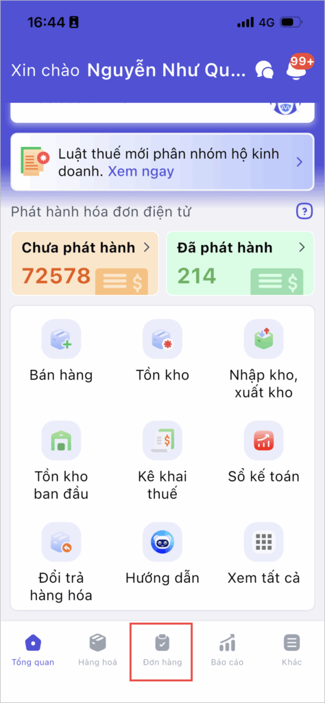 Bài viết hướng dẫn cách theo dõi và xử lý nhanh các đơn hàng đã tạo, cũng như phát hành và gửi hóa đơn điện tử đến cơ quan thuế trực tiếp trên điện thoại.
