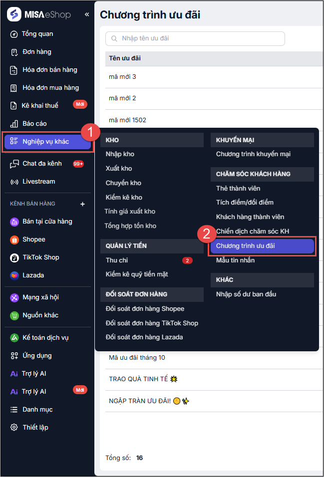 Bước 1. Chọn chức năng tạo chương trình ưu đãi