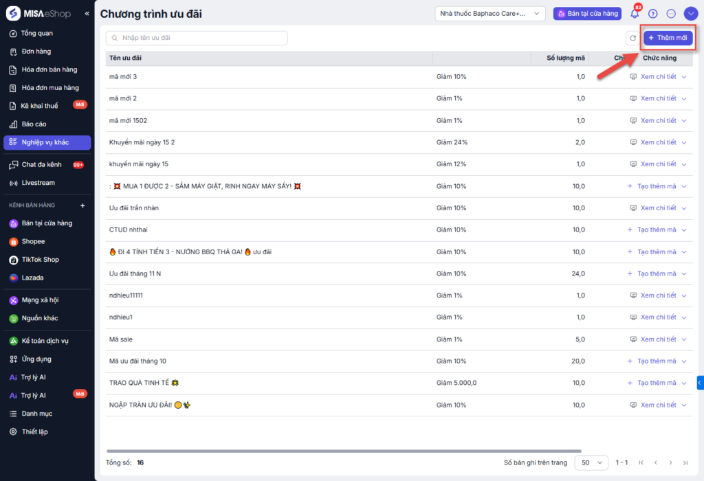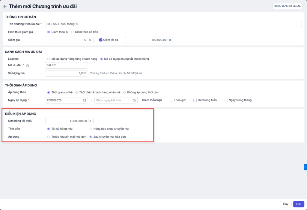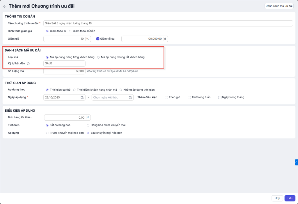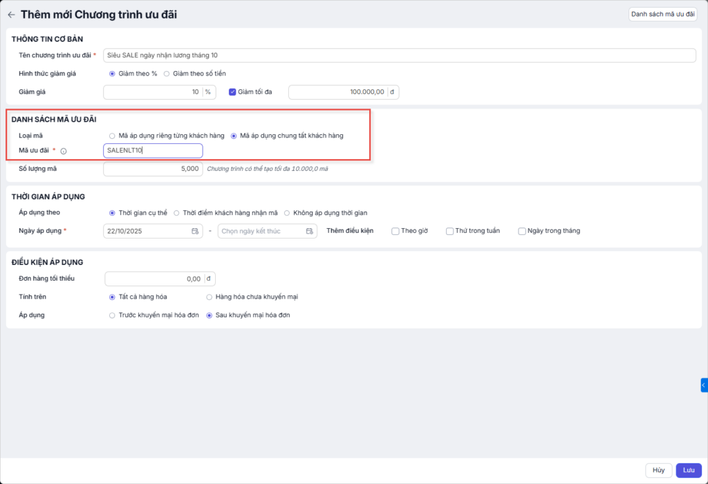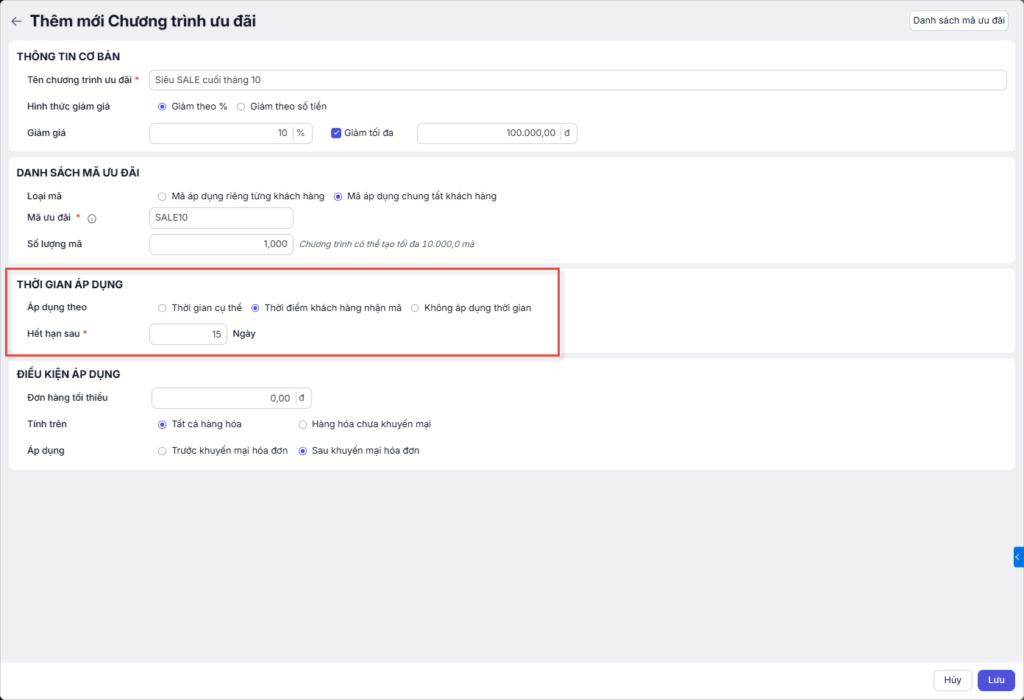 Nhấn Lưu để hoàn tất quá trình tạo và lưu trữ chương trình ưu đãi.