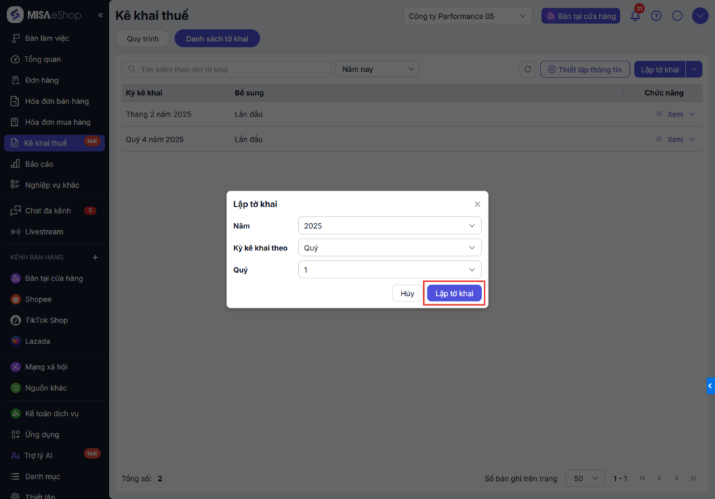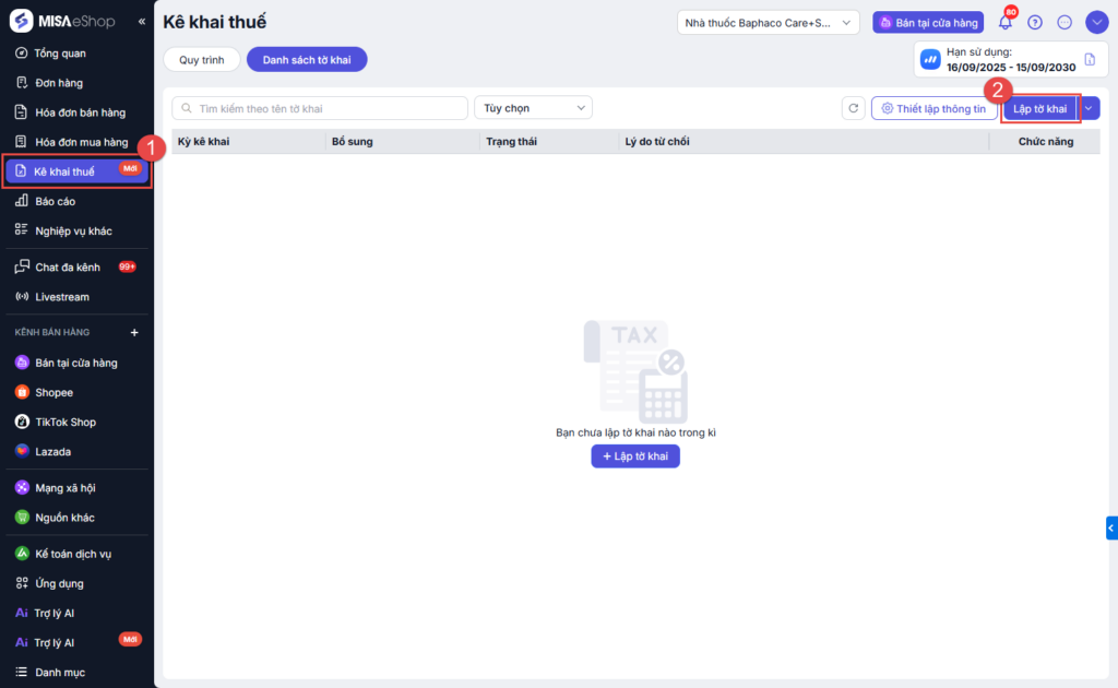 Khai báo số liệu trên tờ khai tương ứng với kỳ tính thuế đã chọn.