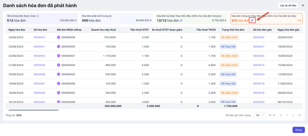 Nếu anh chị đã lập tờ khai và lưu tạm. Sau đó có phát sinh thêm dữ liệu đơn hàng mới, hóa đơn máy tính tiền (hóa đơn mới, hóa đơn thay thế, điều chỉnh) tuy nhiên xem lại tờ khai, danh sách hóa đơn vẫn không hiển thị các hóa đơn mới phát sinh.