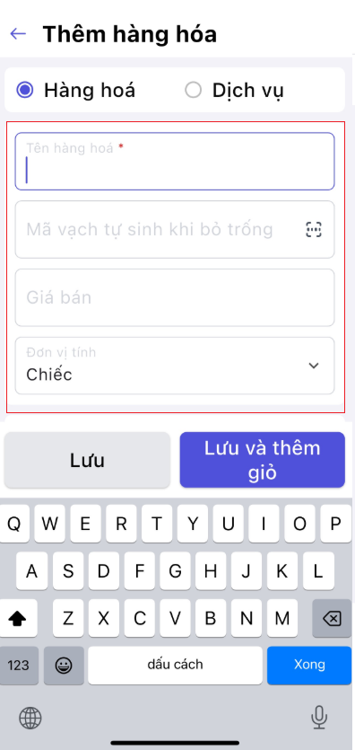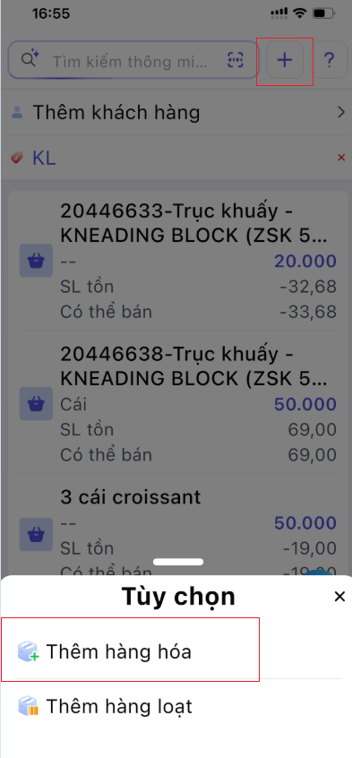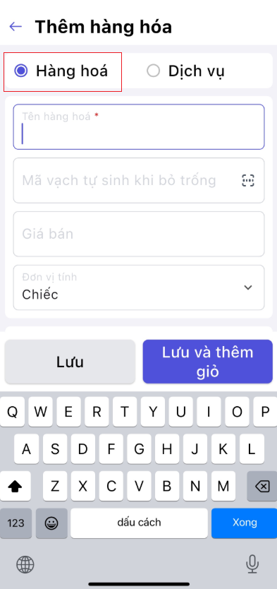 ở góc phải màn hình. Chọn Thêm hàng hóa