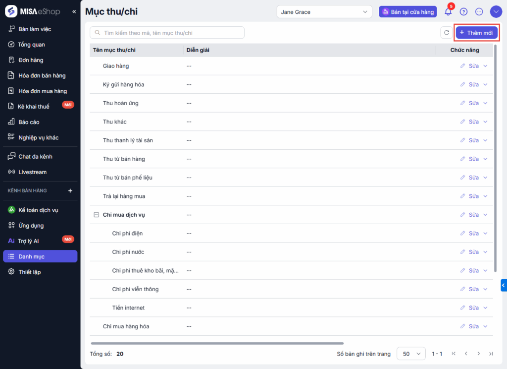 - Nhập tên mục chi mới