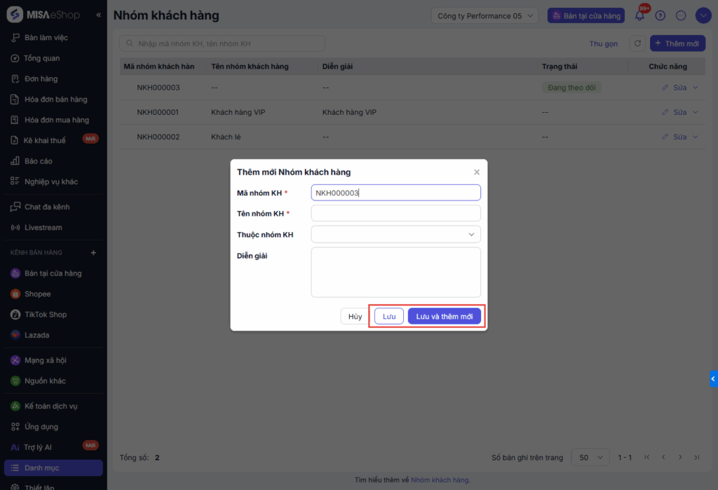 Bài viết hướng dẫn thao tác quản lý nhóm khách hàng trên phần mềm MISA eShop, bao gồm các bước thêm mới, sửa, xóa nhóm khách hàng. Phạm vi áp dụng cho người dùng quản trị danh mục khách hàng trong môi trường doanh nghiệp.