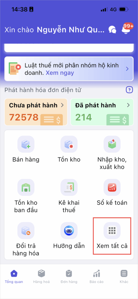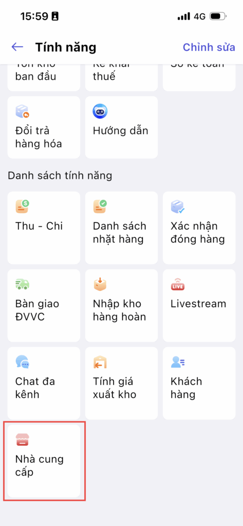 Bước 1: Tại màn hình tổng quan, truy cập danh sách tính năng