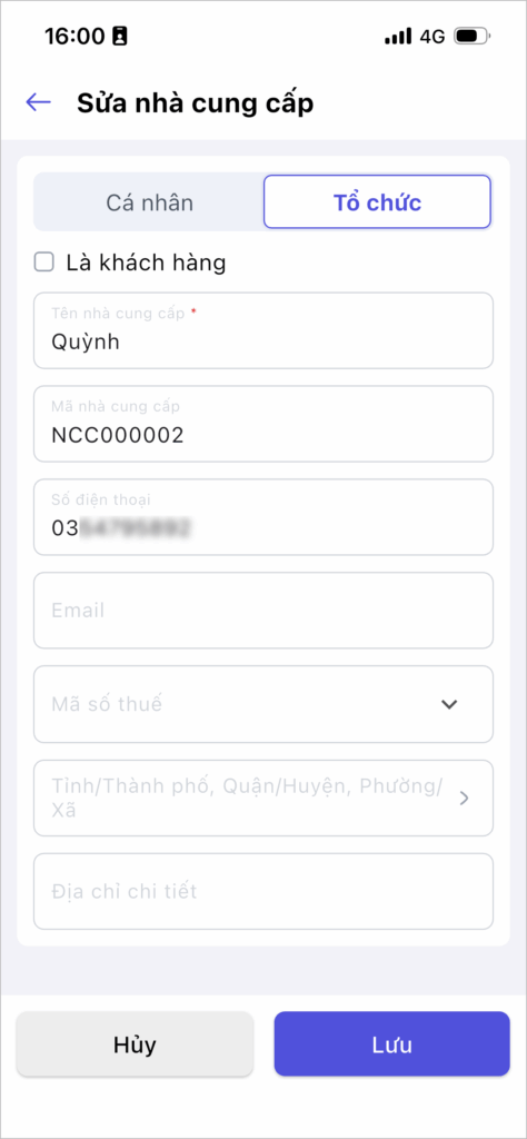 Thêm/Sửa/Xóa nhà cung cấp trên điện thoại
