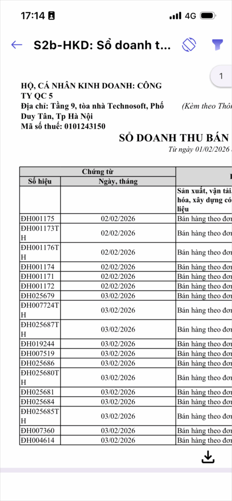 Sổ S2b-HKD áp dụng theo Thông tư 152/2025/TT-BTC, dành cho hộ kinh doanh có doanh thu: Trên 500 triệu đồng đến 3 tỷ đồng/năm, doanh thu trên 3 tỷ đồng đến 50 tỷ đồng/năm và doanh thu trên 50 tỷ đồng/năm. Nộp thuế GTGT theo tỷ lệ % trên doanh thu và thuế TNCN trên thu nhập chịu thuế.