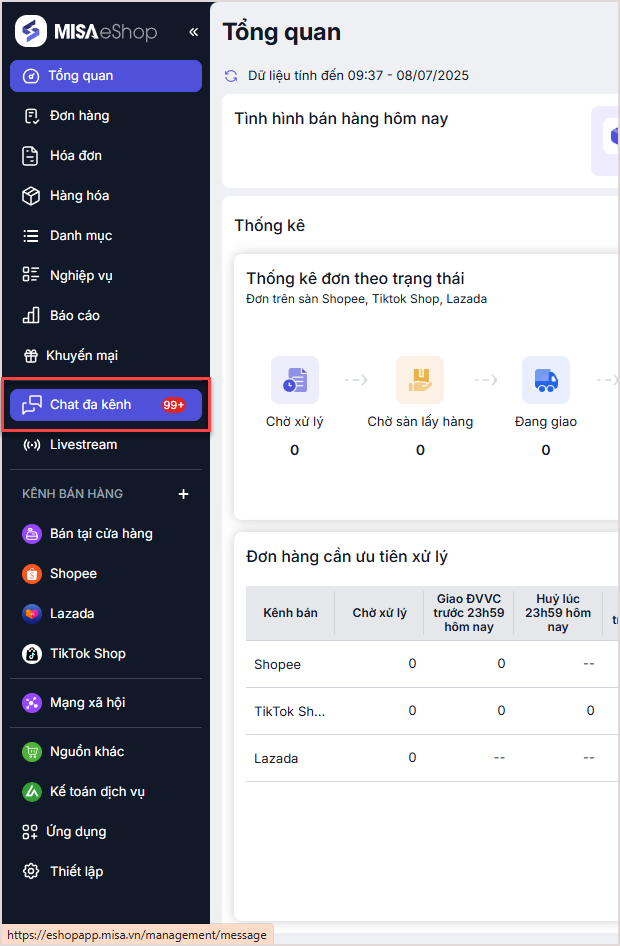 Bước 1: Trên thanh menu, chọn mục Chat đa kênh