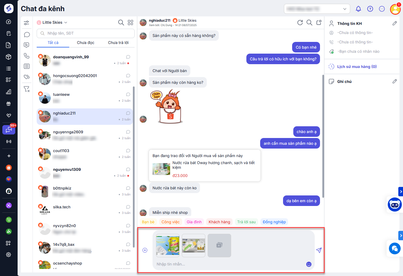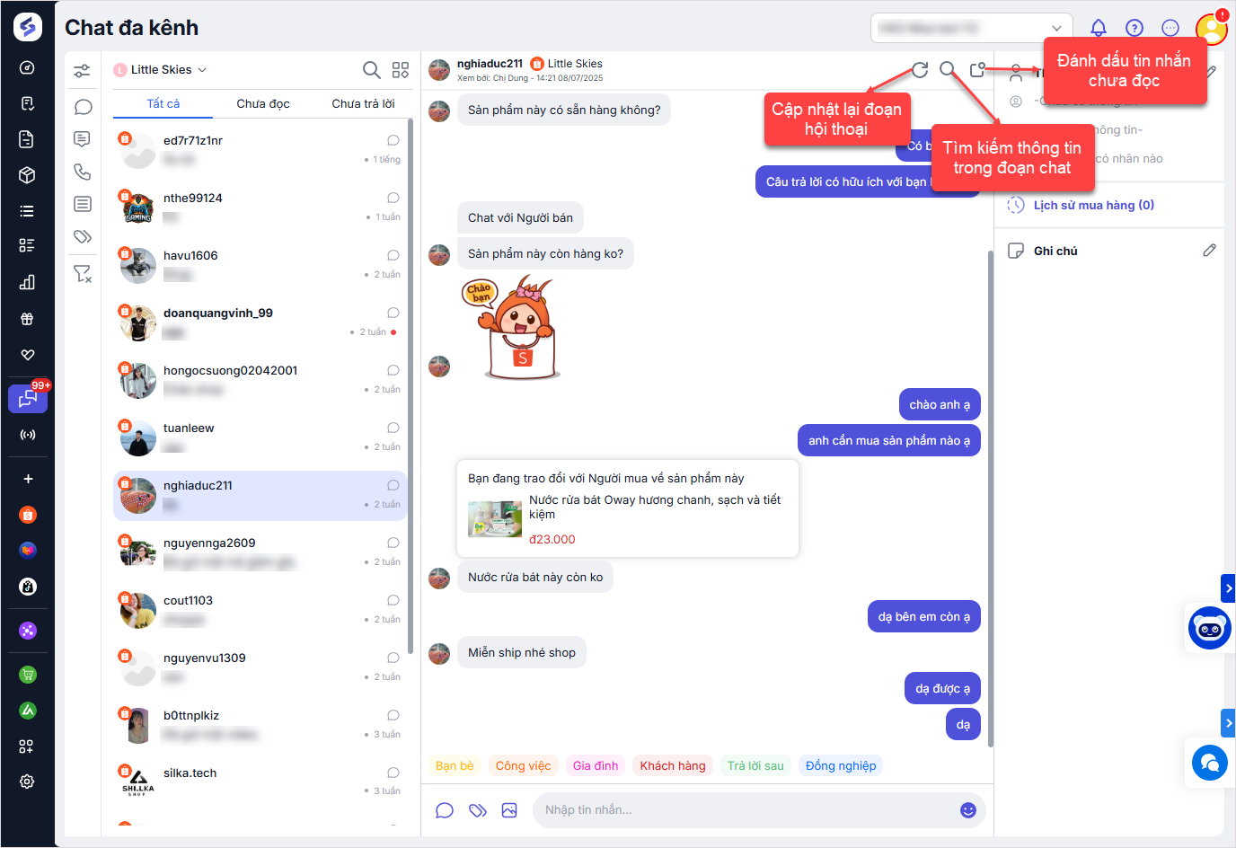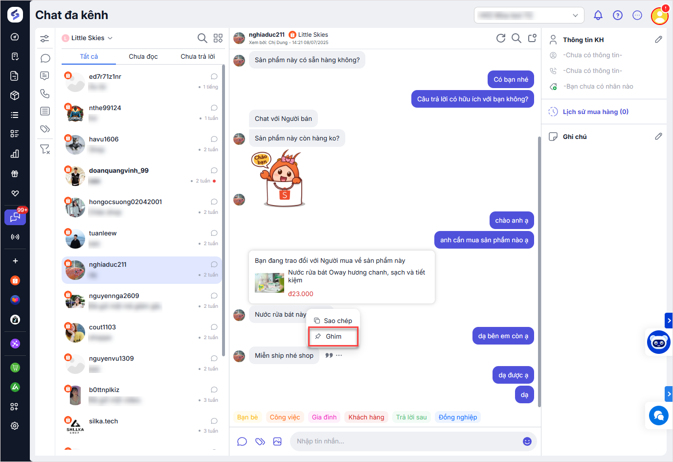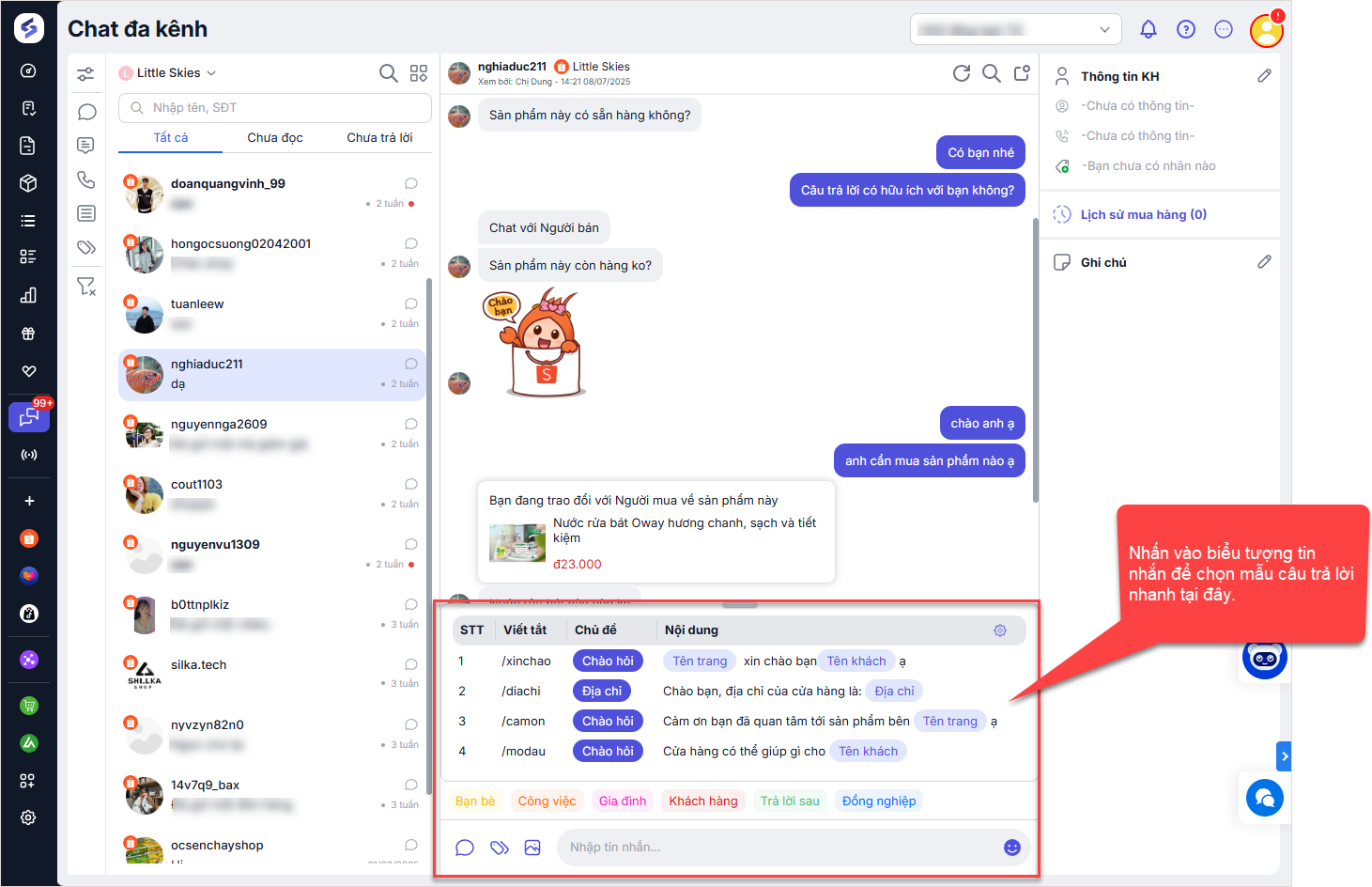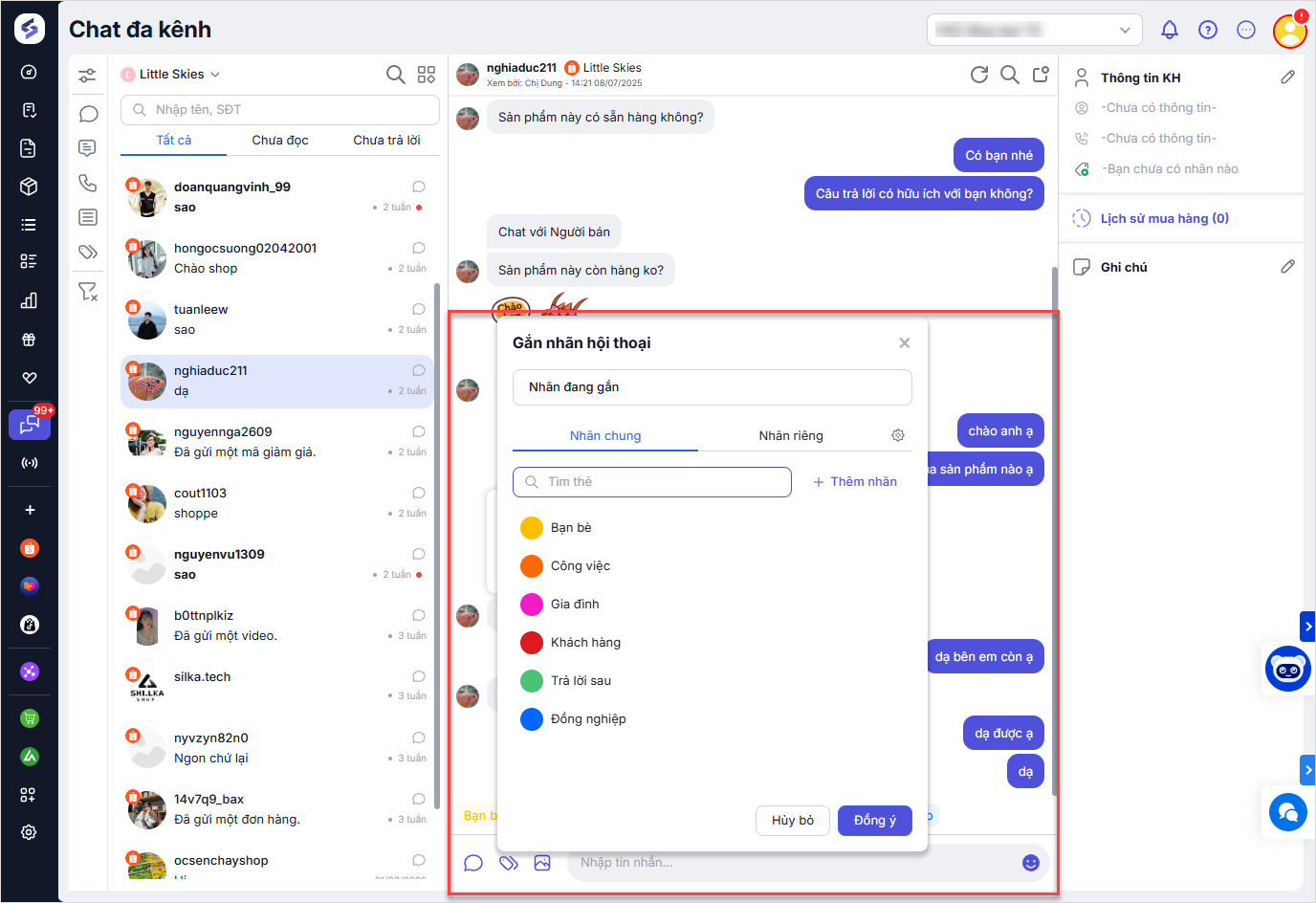 để gắn nhãn (tag) cho mỗi cuộc trò chuyện nếu muốn theo dõi và quản lý khách hàng