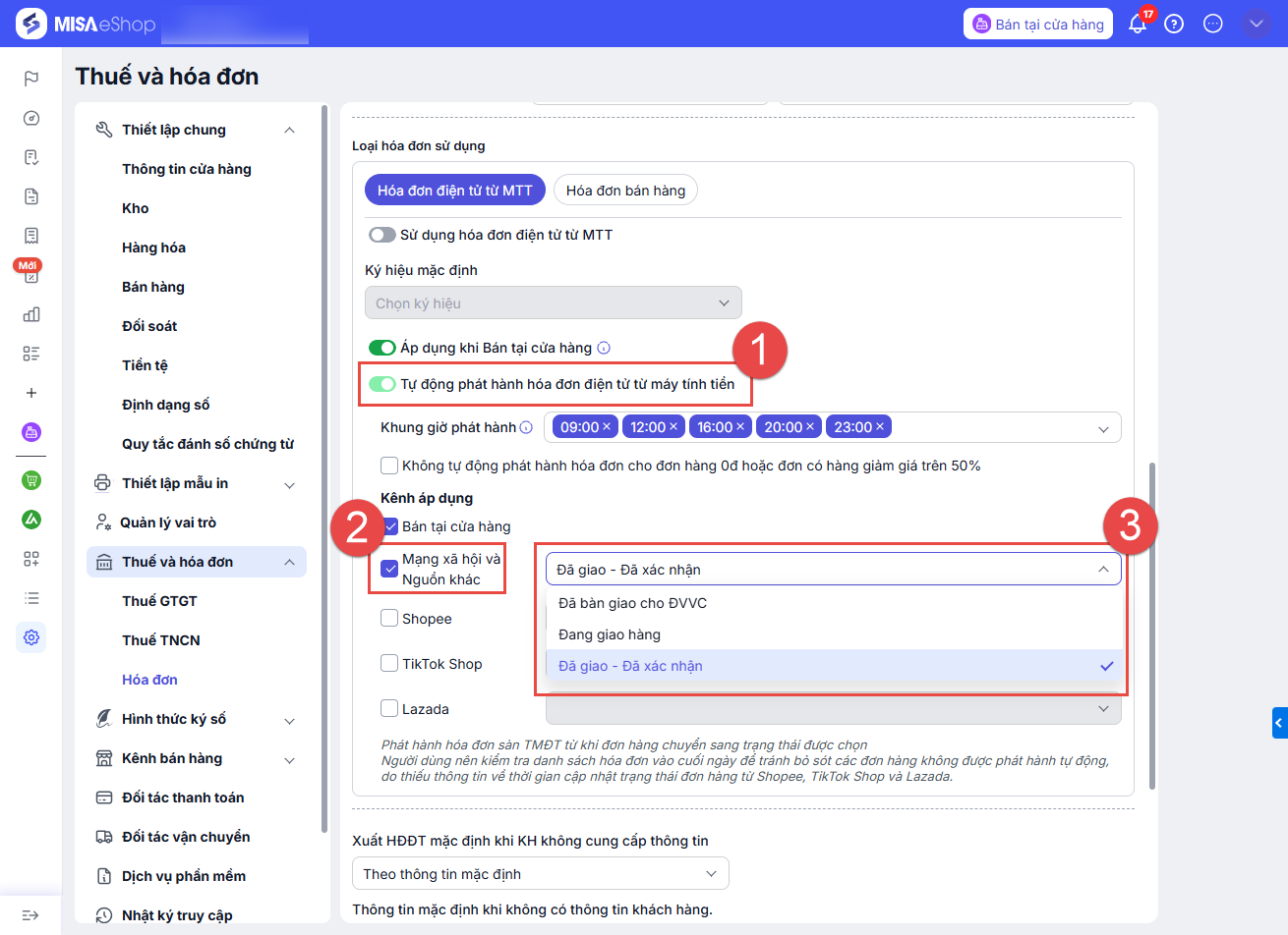 - Tuy nhiên, người dùng nên kiểm tra danh sách hóa đơn vào cuối ngày để tránh bỏ sót các đơn hàng không được phát hành tự động.