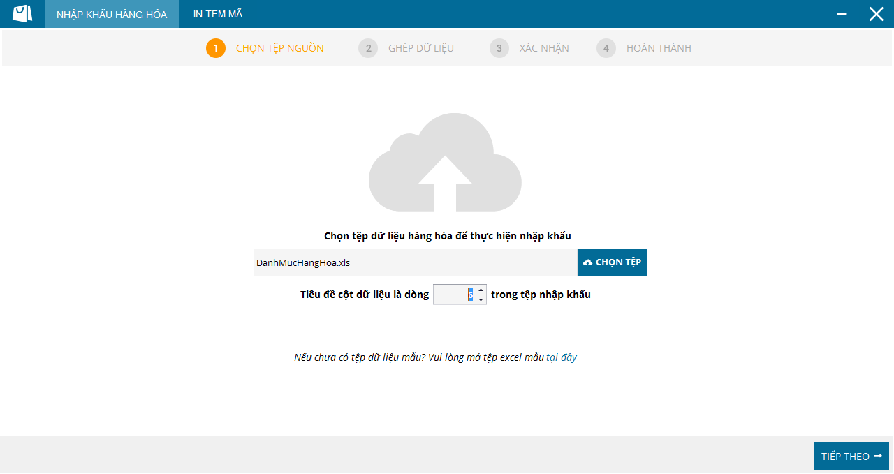 Bước 2: Nhập khẩu danh sách hàng hóa từ file excel