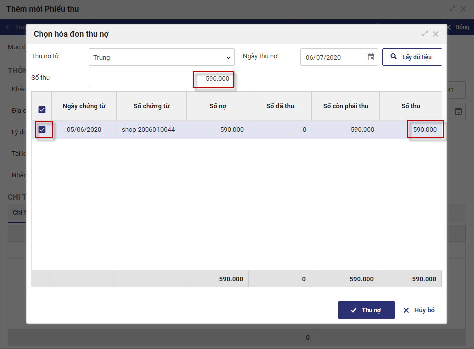 - Nhấn Thu nợ.
