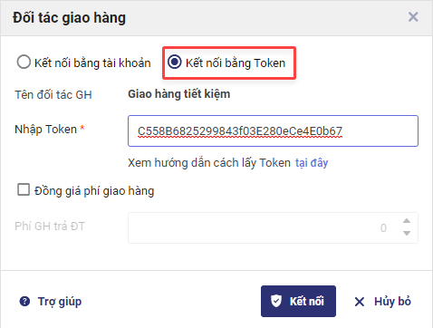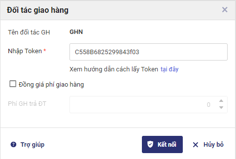 • Nhập mã Token đã đăng ký với đơn vị vận chuyển