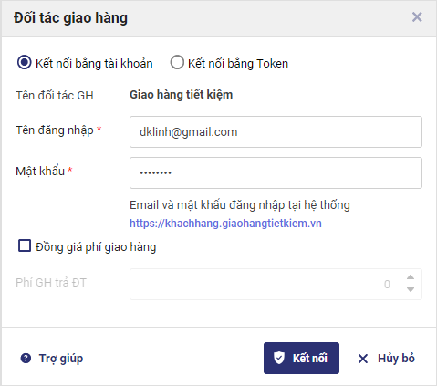 2.1 Kết nối với Giao hàng nhanhGiao hàng tiết kiệm