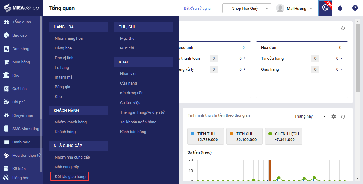 Tại màn hình quản lý, nhấn vào biểu tượng , chọn Đối tác giao hàng.