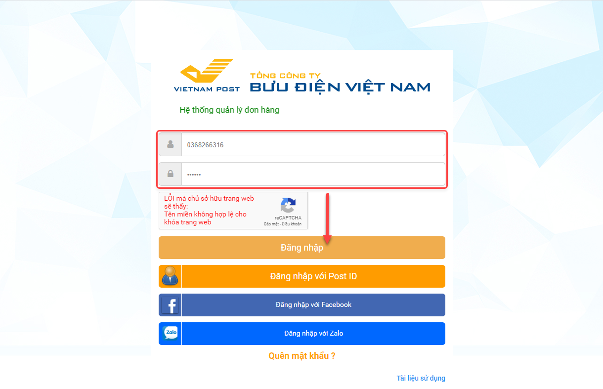 Bước 3: Nhập tài khoản đã đăng ký VNPost, nhấn Đăng nhập để hoàn tất Kết nối.