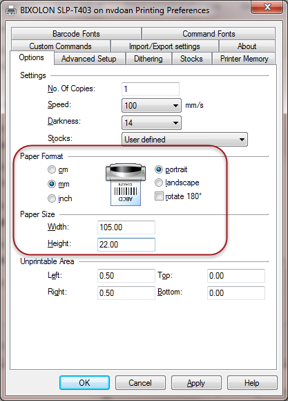 Trường hợp chưa thiết lập khổ giấy in tem cho máy in, khi in tem sẽ dẫn đến nội dung in tem bị lệch, không đúng. Khi đó cần thực hiện thiết lập máy in theo các bước sau: