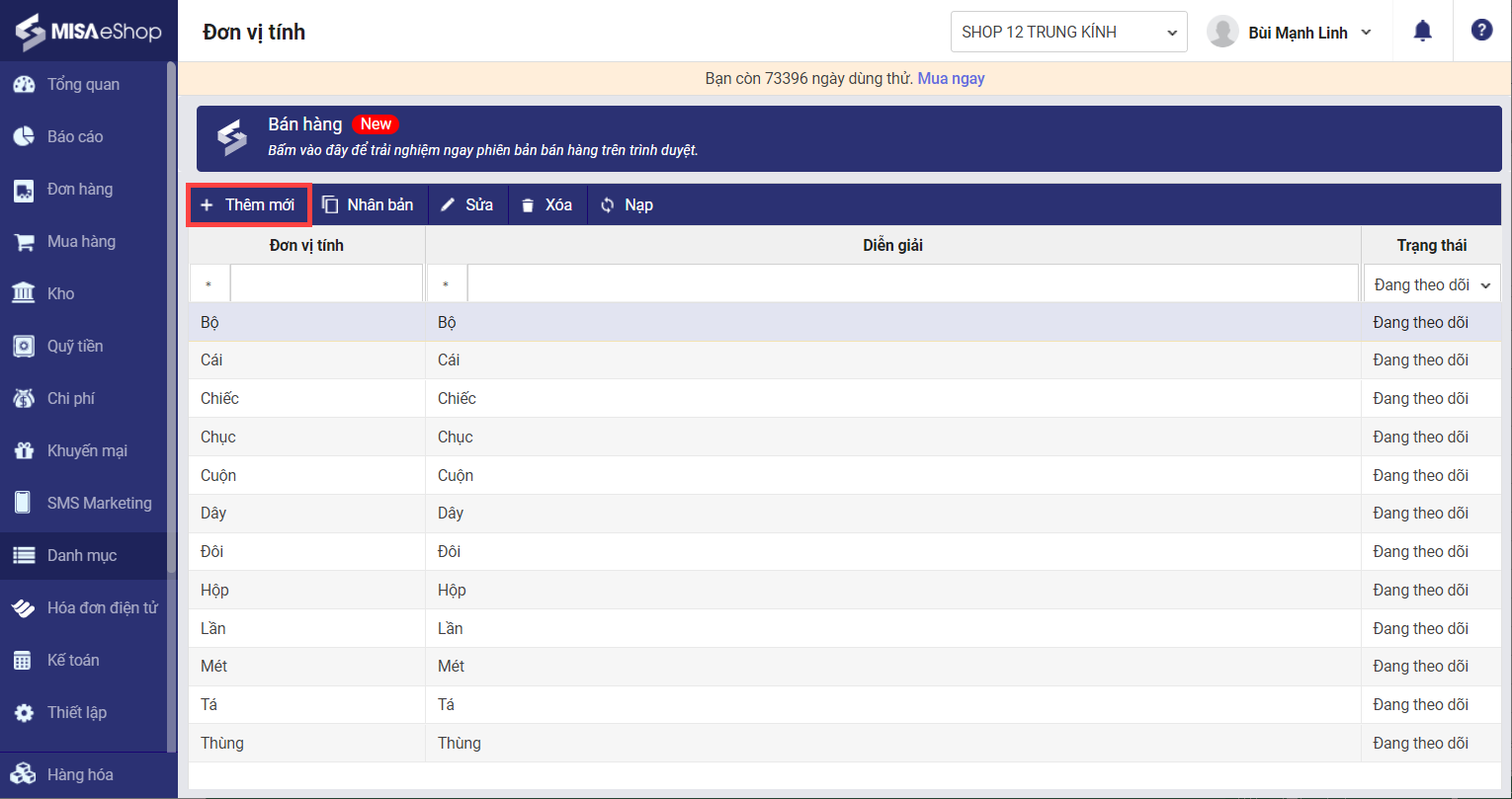 2. Nhấn Thêm mới.