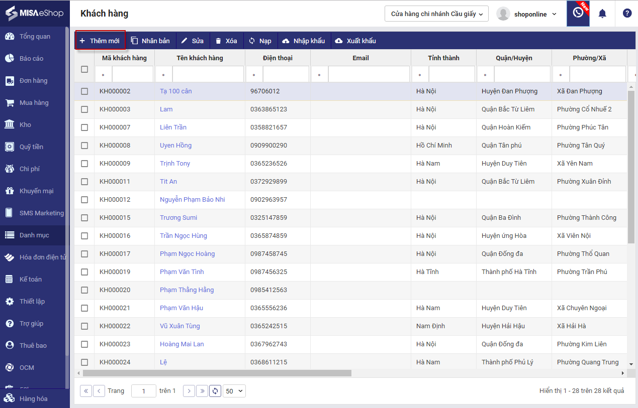 1. Chọn Danh mục\Khách hàng.