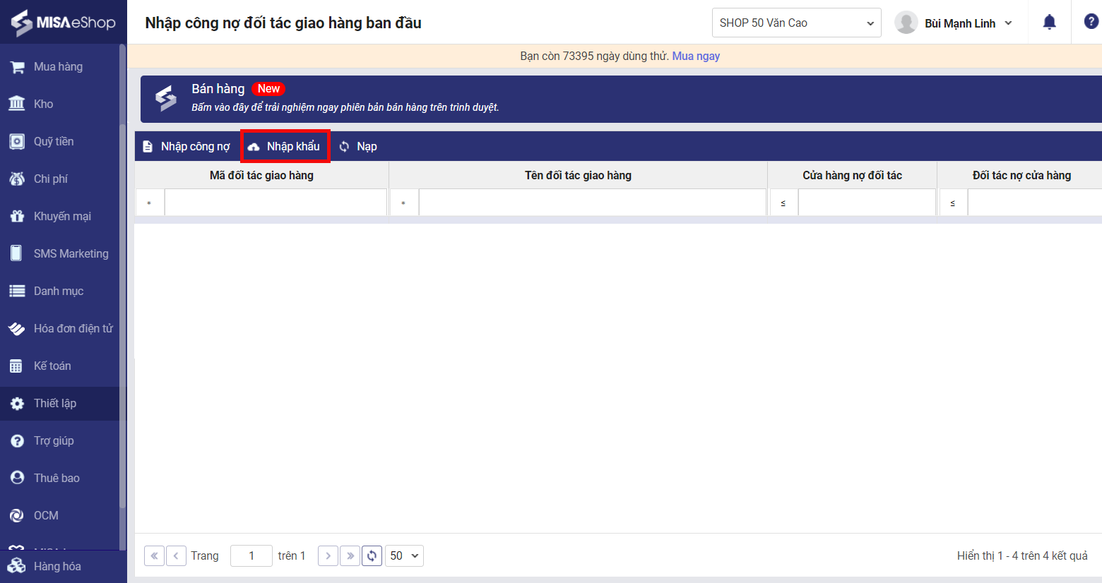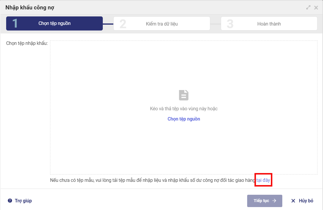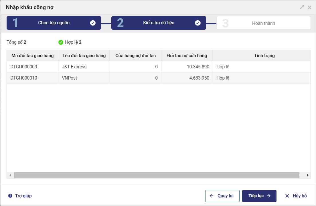 Bước 2: Nhập khẩu danh sách công nợ đối tác giao hàng vào phần mềm