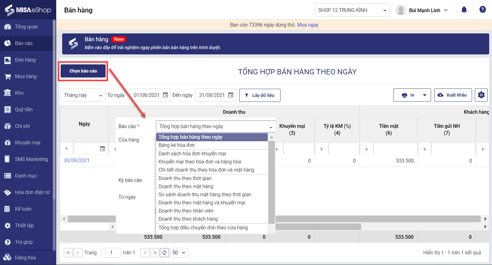 - Nhấn Chọn báo cáo.