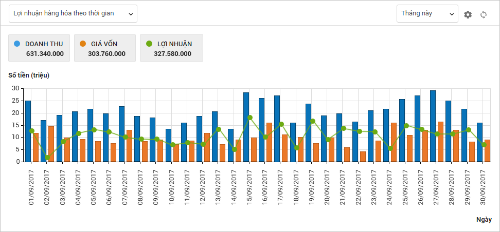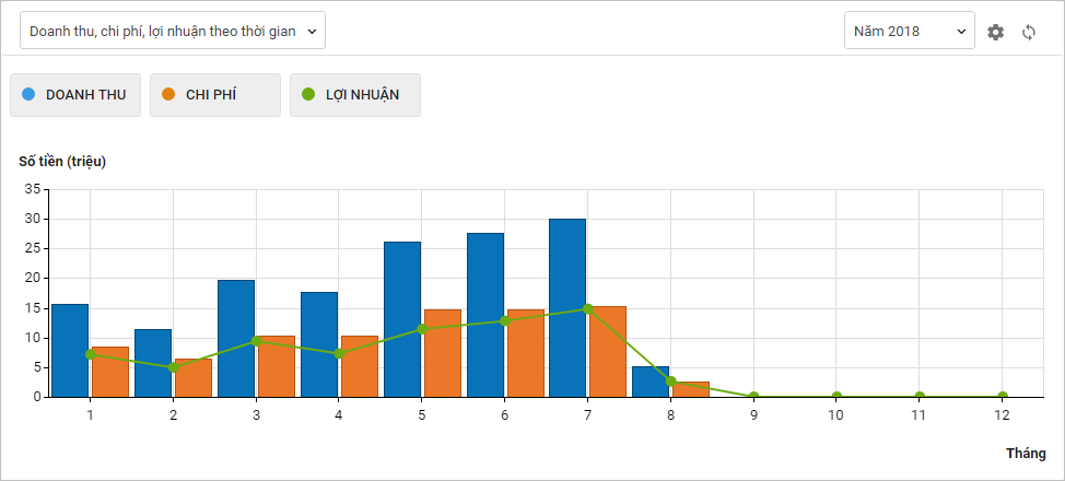 - Doanh thu, chi phí, lợi nhuân theo thời gian