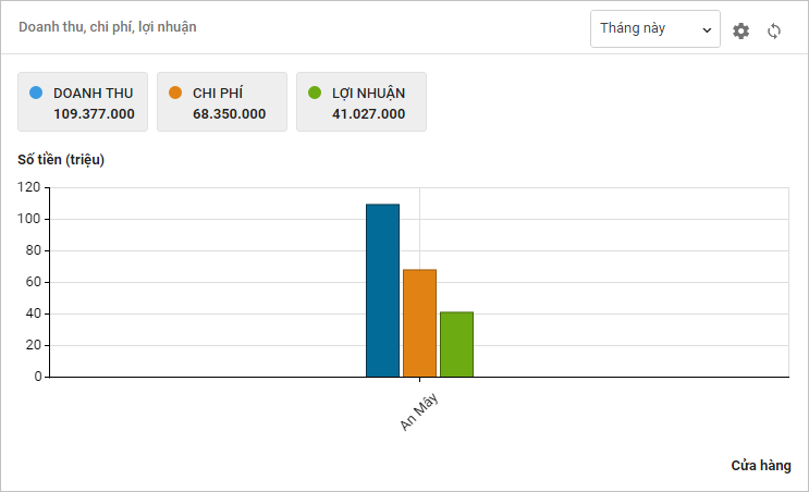 Mục đích: Giúp quản lý cửa hàng xem được tổng quát doanh thu, chi phí, lợi nhuận trong kỳ báo cáo.