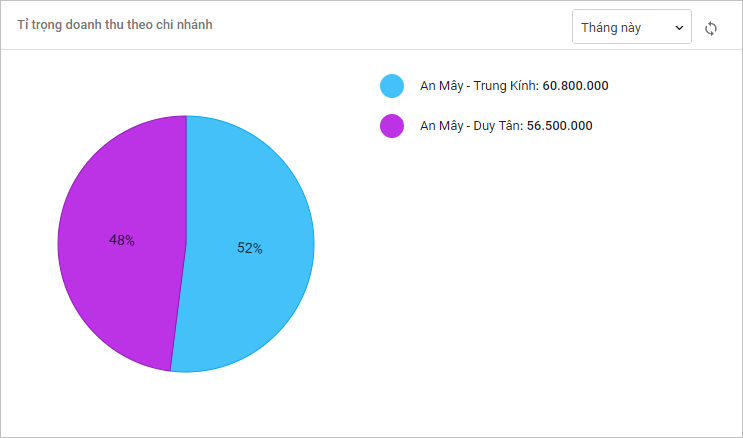 6. Với Chuỗi cửa hàng, Quản lý có thể xem được báo cáo Tỉ trọng doanh thu theo chi nhánh.