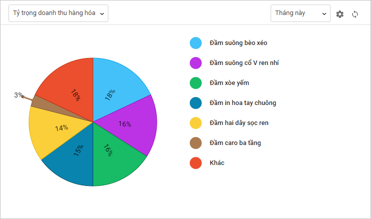 Mục đích: So sánh tỷ trọng doanh thu giữa các hàng hóa với nhau để biết hàng hóa nào mang lại doanh thu cao.