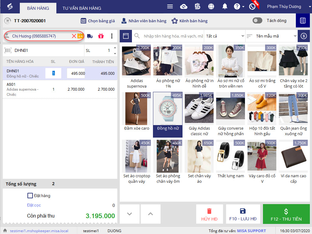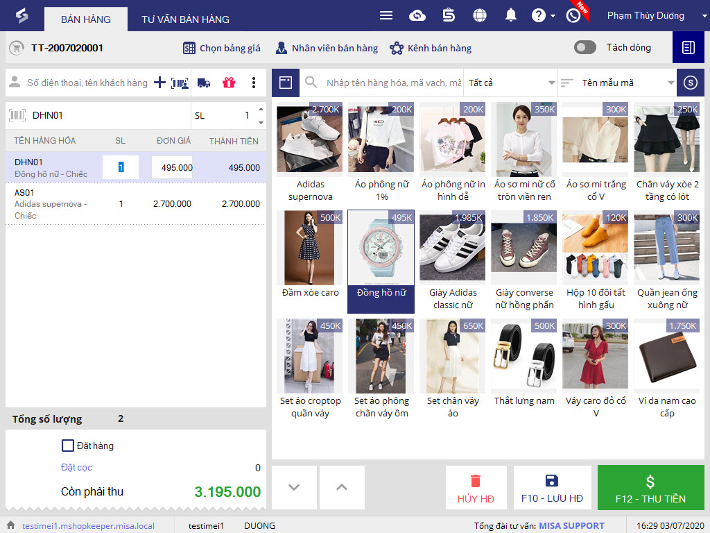 1. Tùy theo mô hình triển khai của cửa hàng, chọn hàng hóa từ danh sách hoặc quét mã vạch hàng hóa khách mua