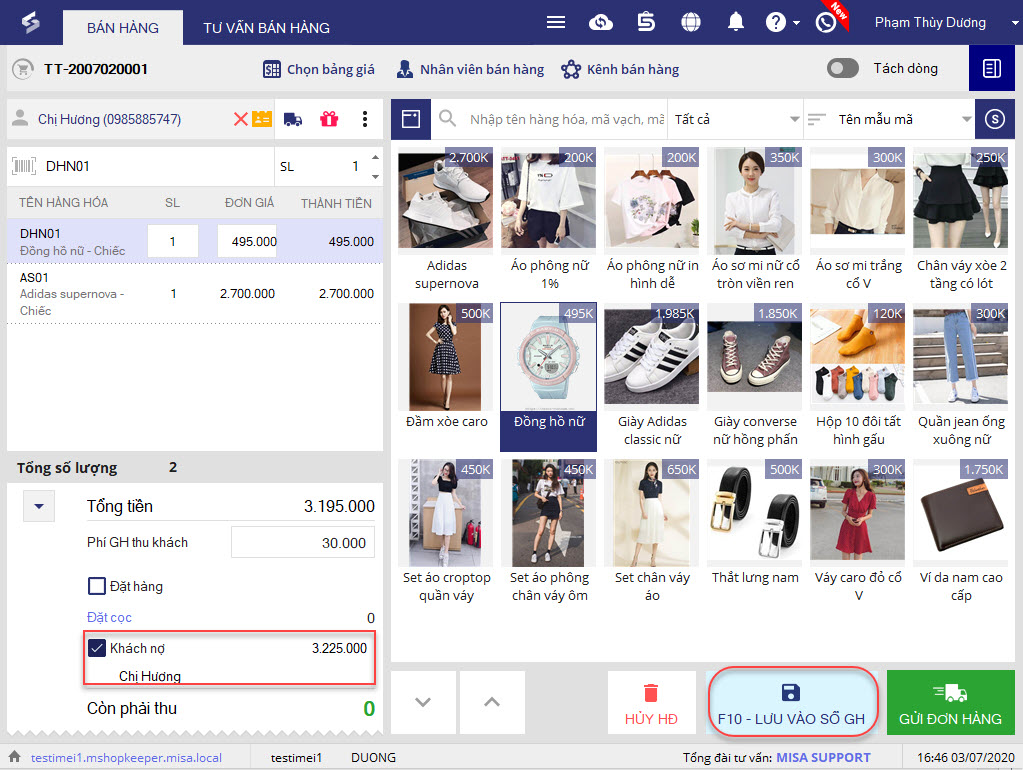 8. Sau đó, nhấn F10 – Lưu vào sổ GH (Lưu vào sổ giao hàng).