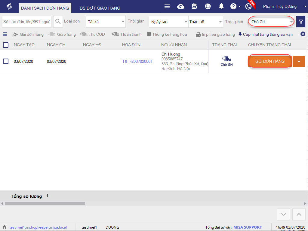 3. Nhấn Giao hàng tương ứng với đơn hàng của khách.