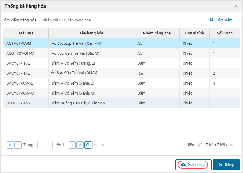 - Nhấn chọn 1 hoặc nhiều đơn giao hàng. Chọn Thống kê hàng hóa.