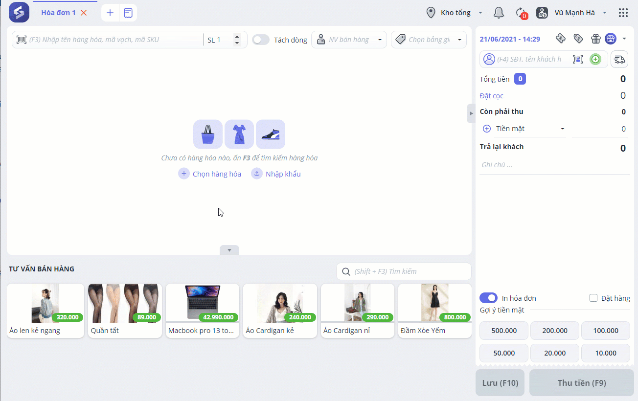 Thu ngân theo dõi đơn và giao hàng cho khách theo các bước sau:
