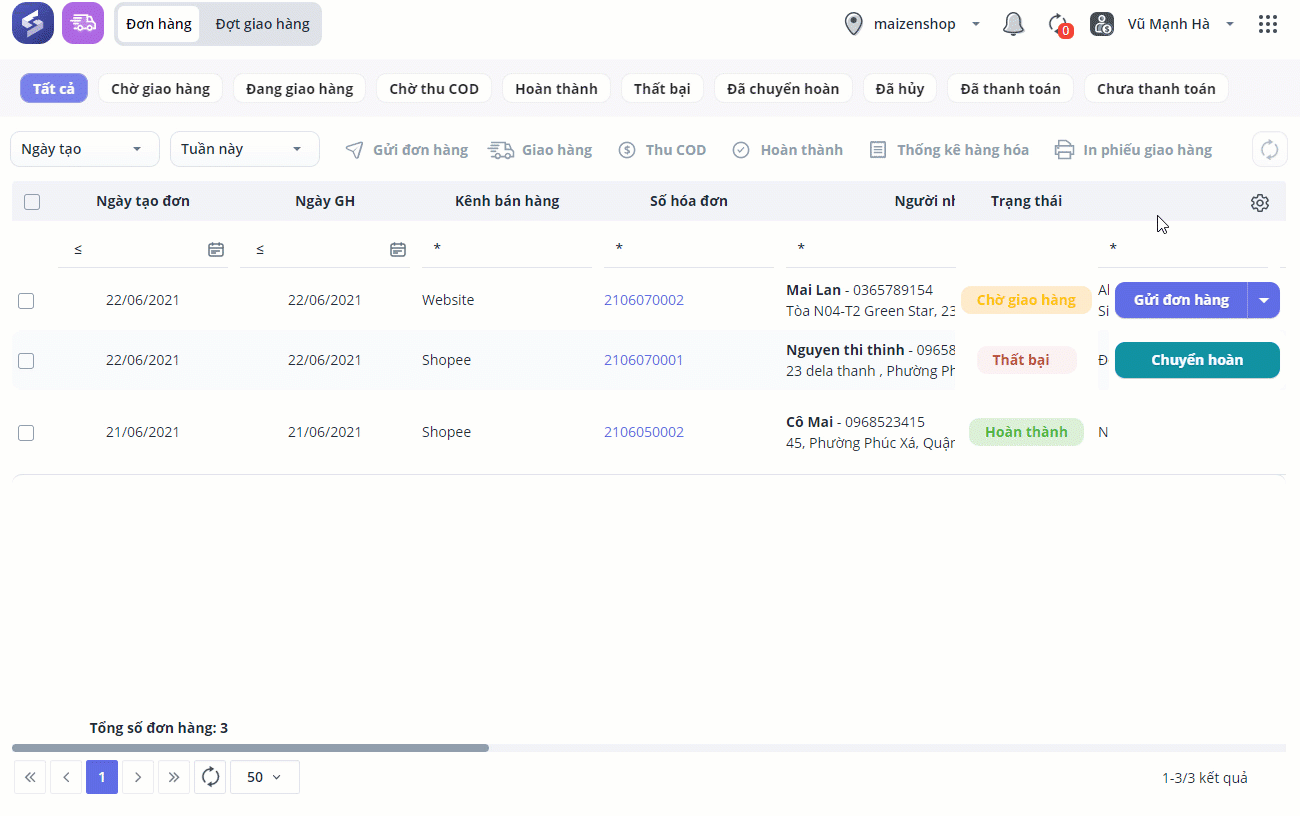 Bước 3: Cập nhật và theo dõi trạng thái đơn hàng