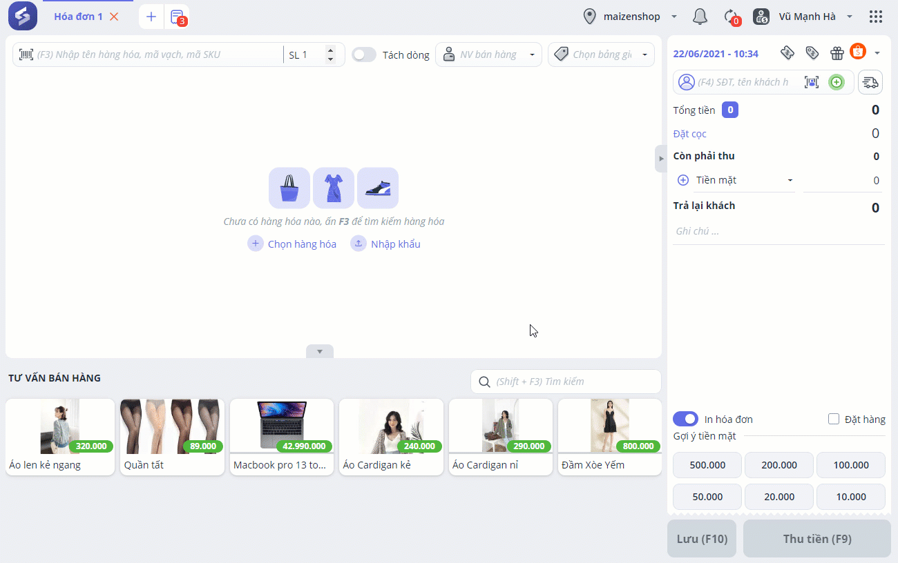Bước 2: Lựa chọn hàng hóa khách đã đặt.