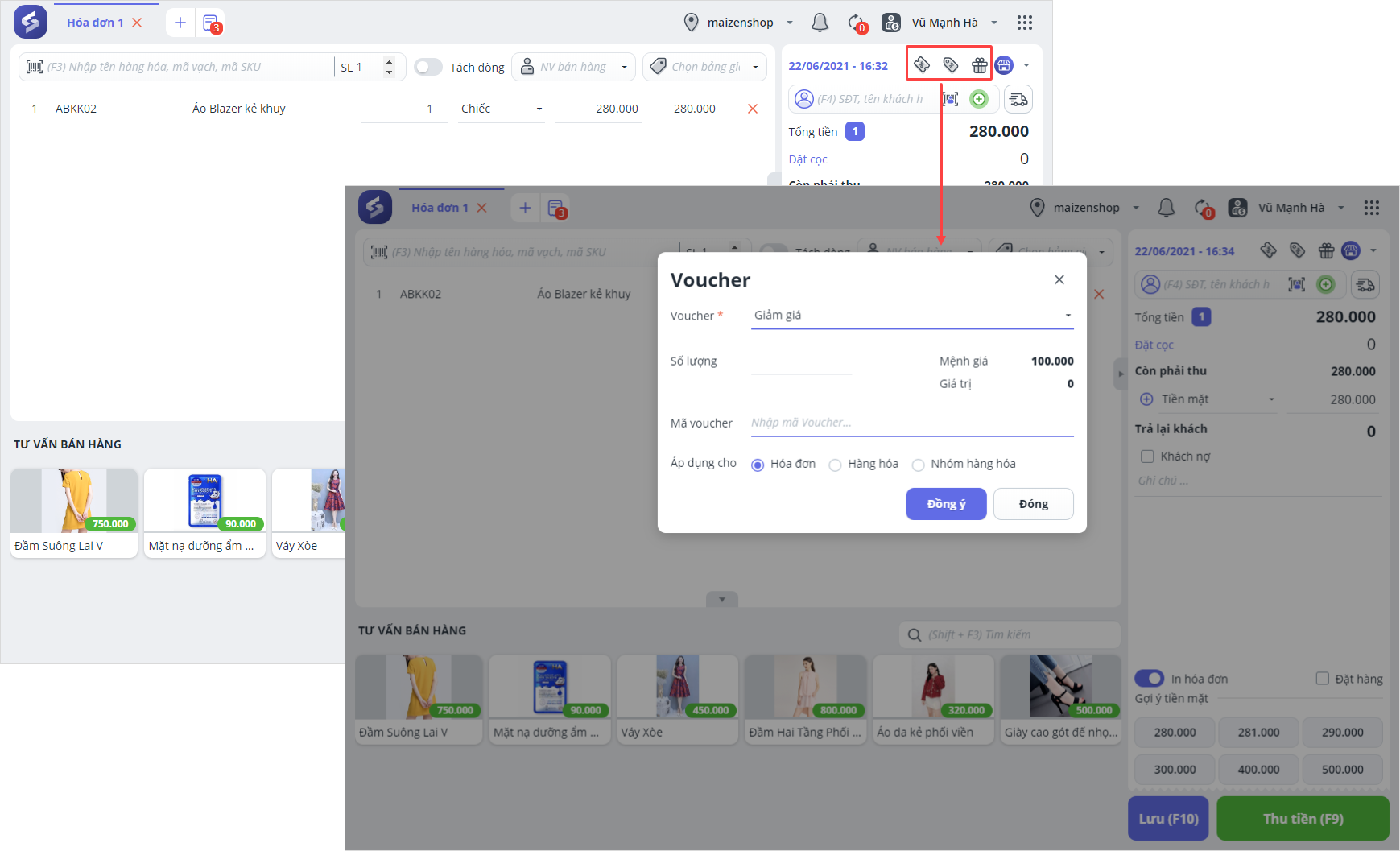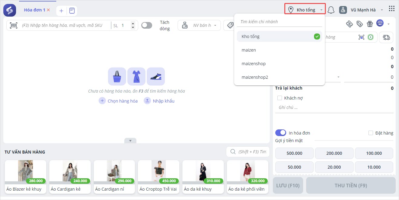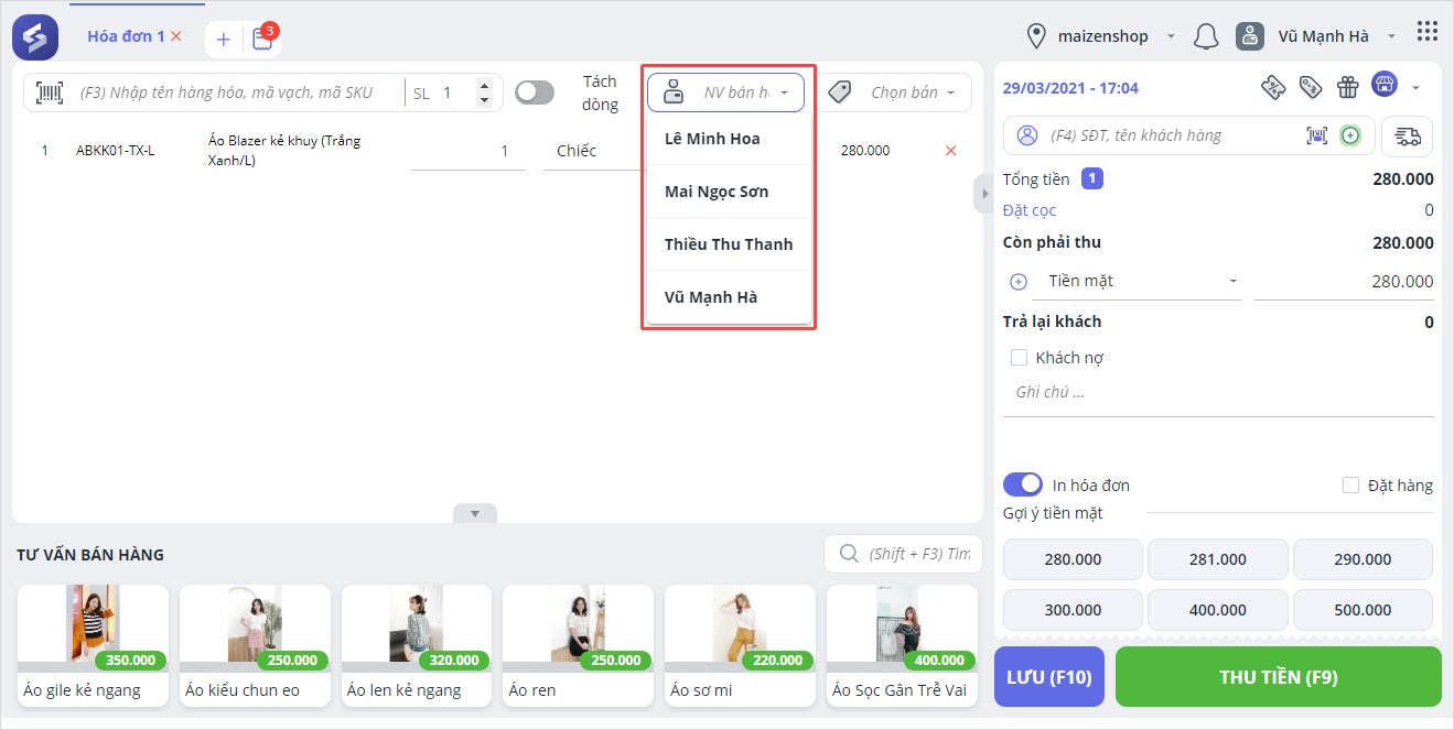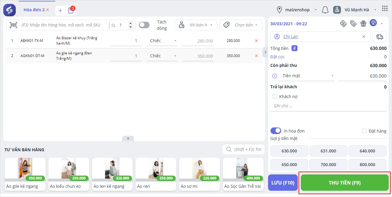 + Thu tiền: với đơn khách mua và thanh toán tại cửa hàng