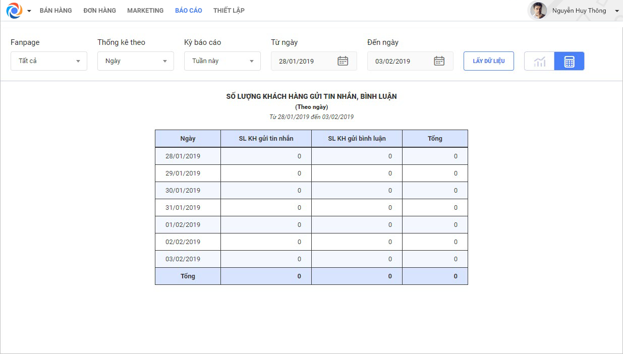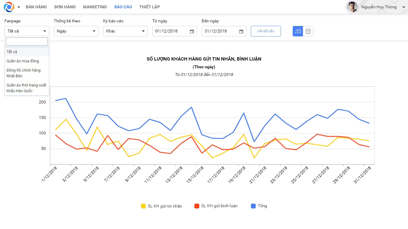 4. Báo cáo số lượng tin nhắn, bình luận trên Fapage