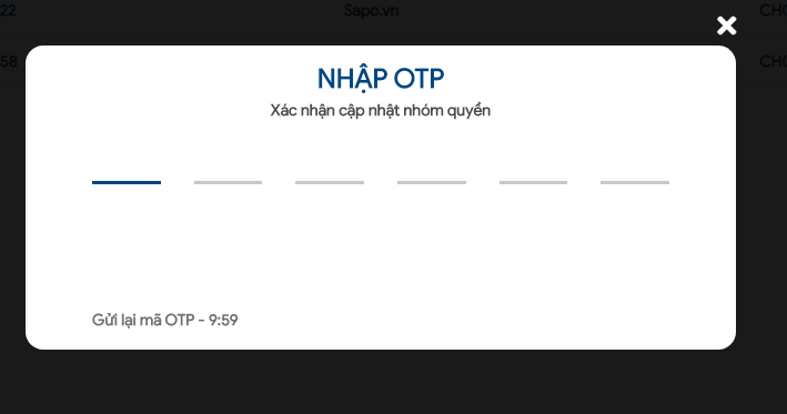 Nhấn Hoàn tất và nhập OTP xác nhận để cấp quyền.