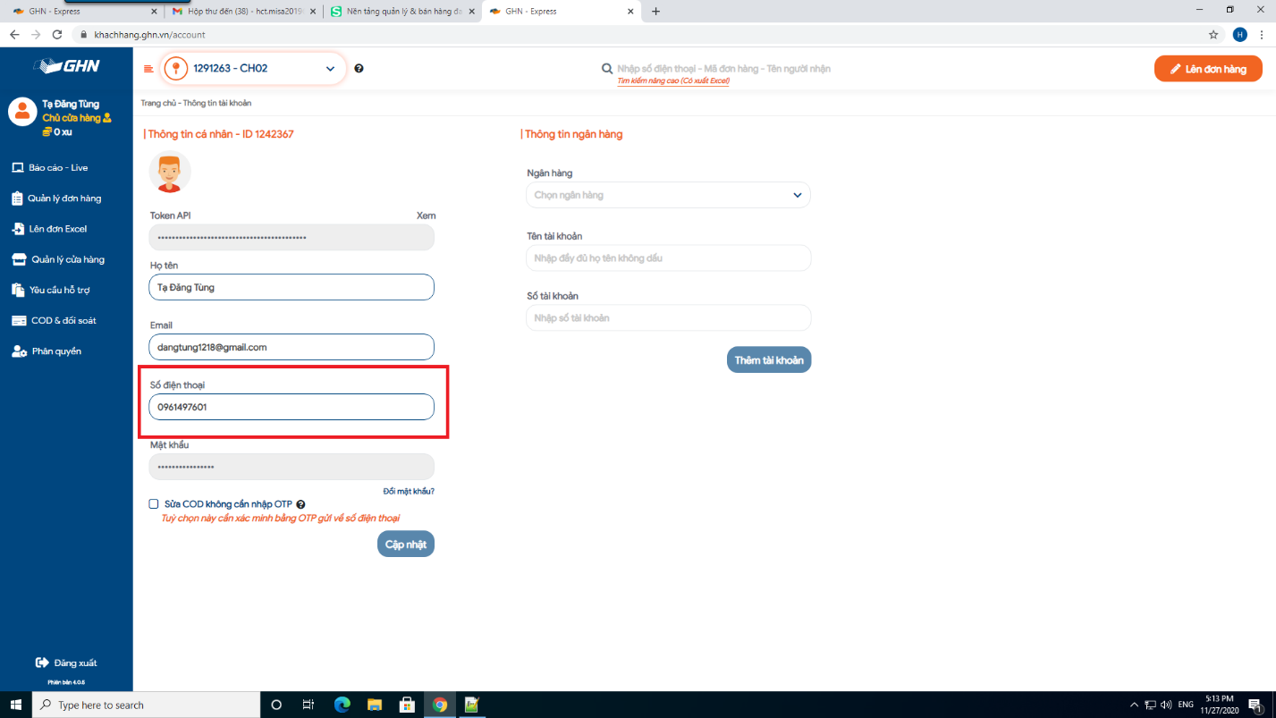 GHN cập nhật cách thức kết nối với phần mềm bán hàng: Khách hàng cần phân quyền cho phần mềm bán hàng trên tài khoản GHN để gửi đơn hàng