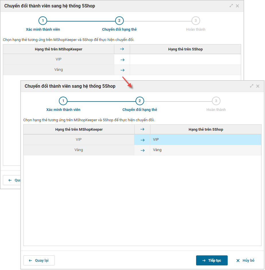 trong trường hợp muốn sao chép hạng thẻ từ MShopKeeper.