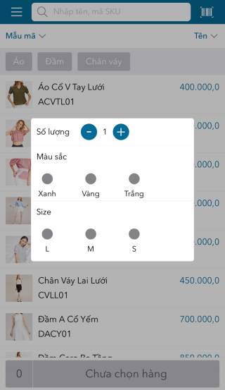 - Nhập số lượng, màu sắc và size hàng hóa khách mua.
