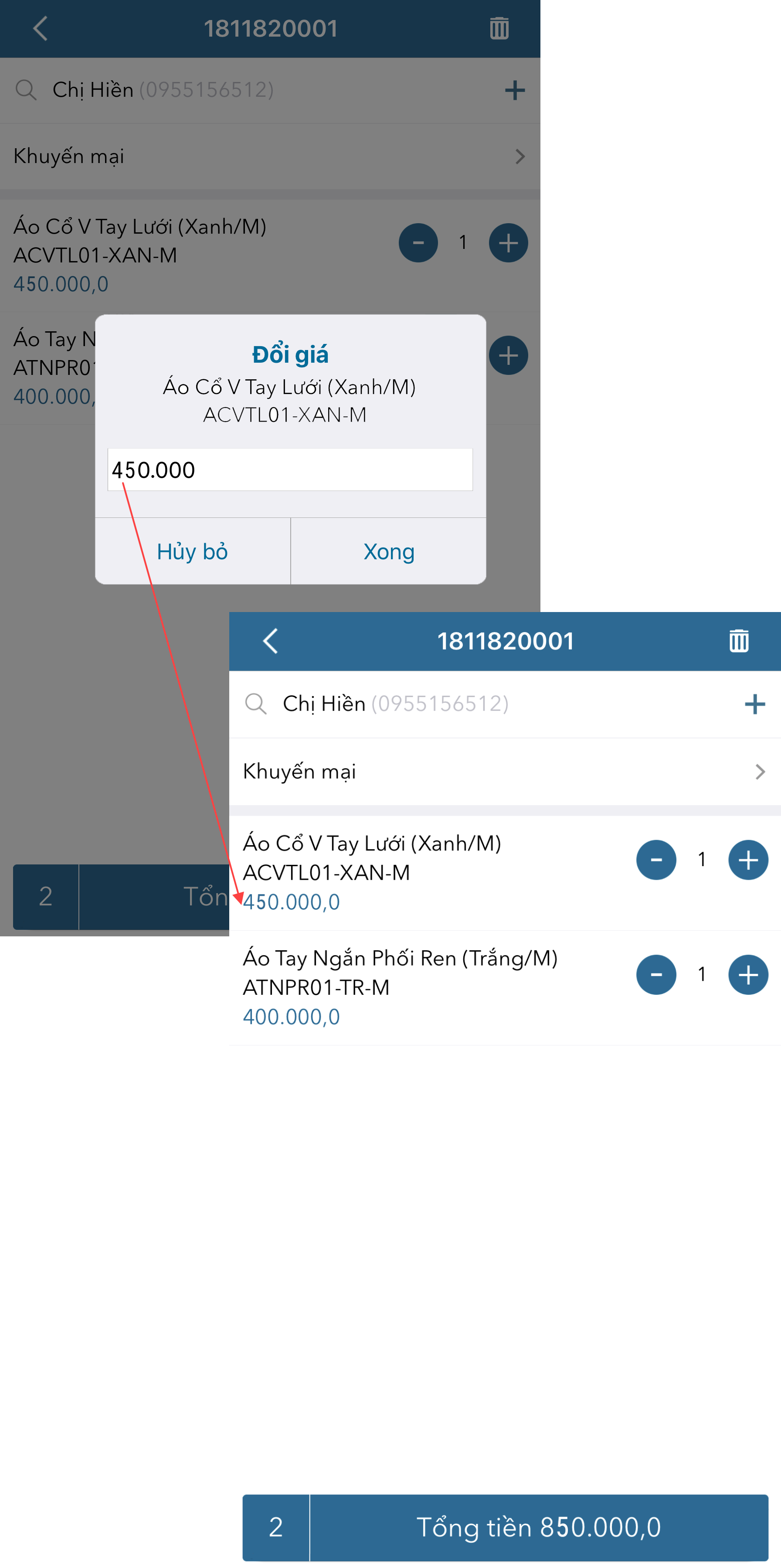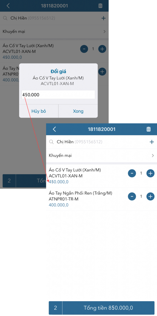 - Nhập giá mới và nhấn Xong.