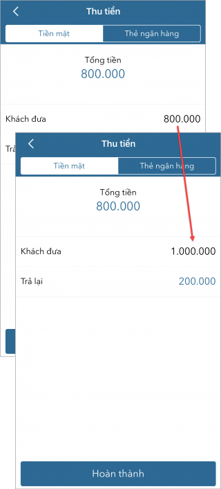 - Chọn tab Tiền mặt, nhập số tiền khách đưa.